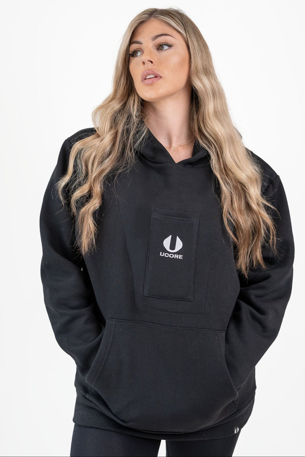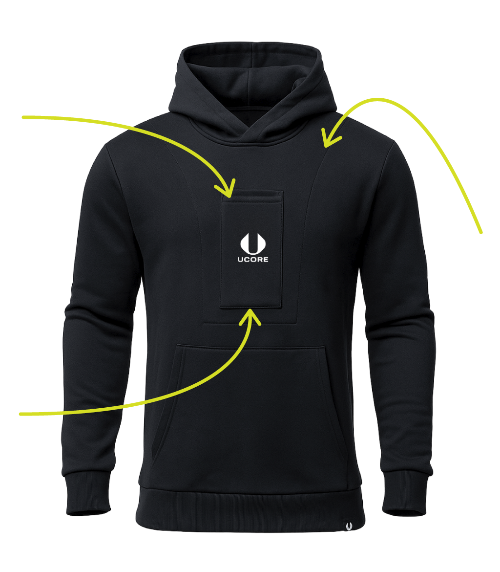 The Ucore Women's Tech Hoodie blends urban style with smart design. Featuring a hidden phone pocket with USB access for secure charging and easy access on the move. Built for comfort, made for city life.