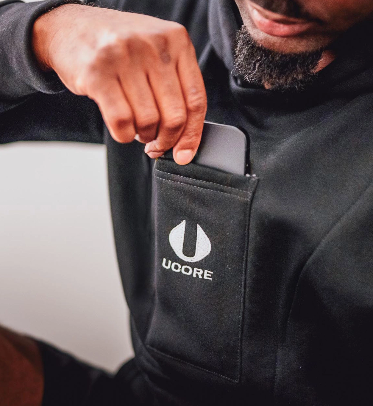 “At last, a hoodie that understands modern life on the go! The phone pocket offers both convenience and peace of mind and I don’t even need a bag to put my phone in when I’m out running errands. A must have garment!”